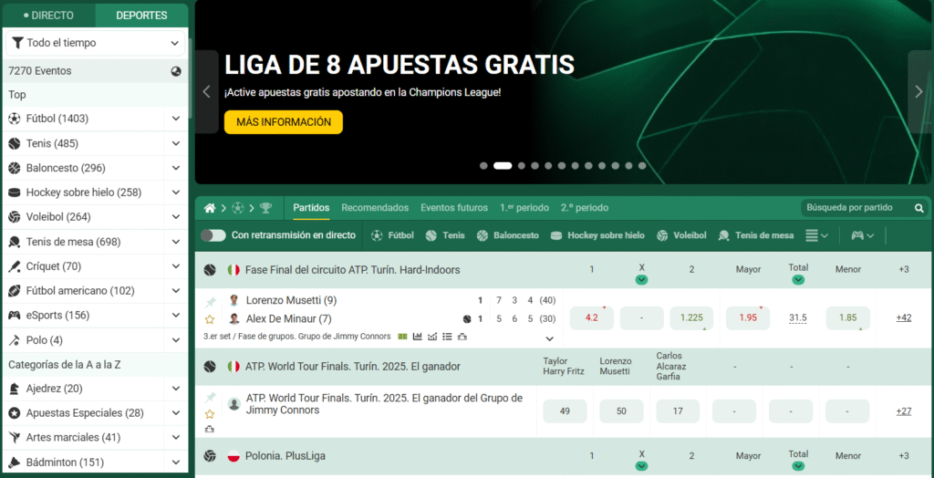 | Apuestas destacadas | Fútbol, béisbol, baloncesto, eSports |