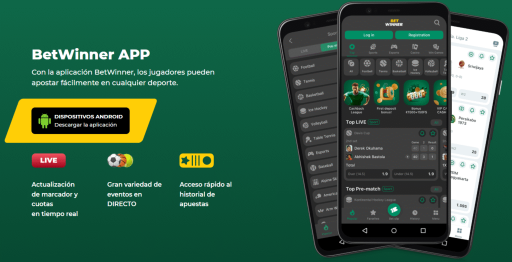 BetWinner app funciona perfecto en Android y en iPhone. La app funciona sin ningún problema incluso en móviles y software de versiones anteriores. En la app tienes todo lo que buscas. Podrás apostar en deportes, jugar en casinos en vivo con crupieres reales, ingresar dinero y retirar tus ganancias. Además recibirás notificaciones para que no te pierdas los eventos que te interesan.